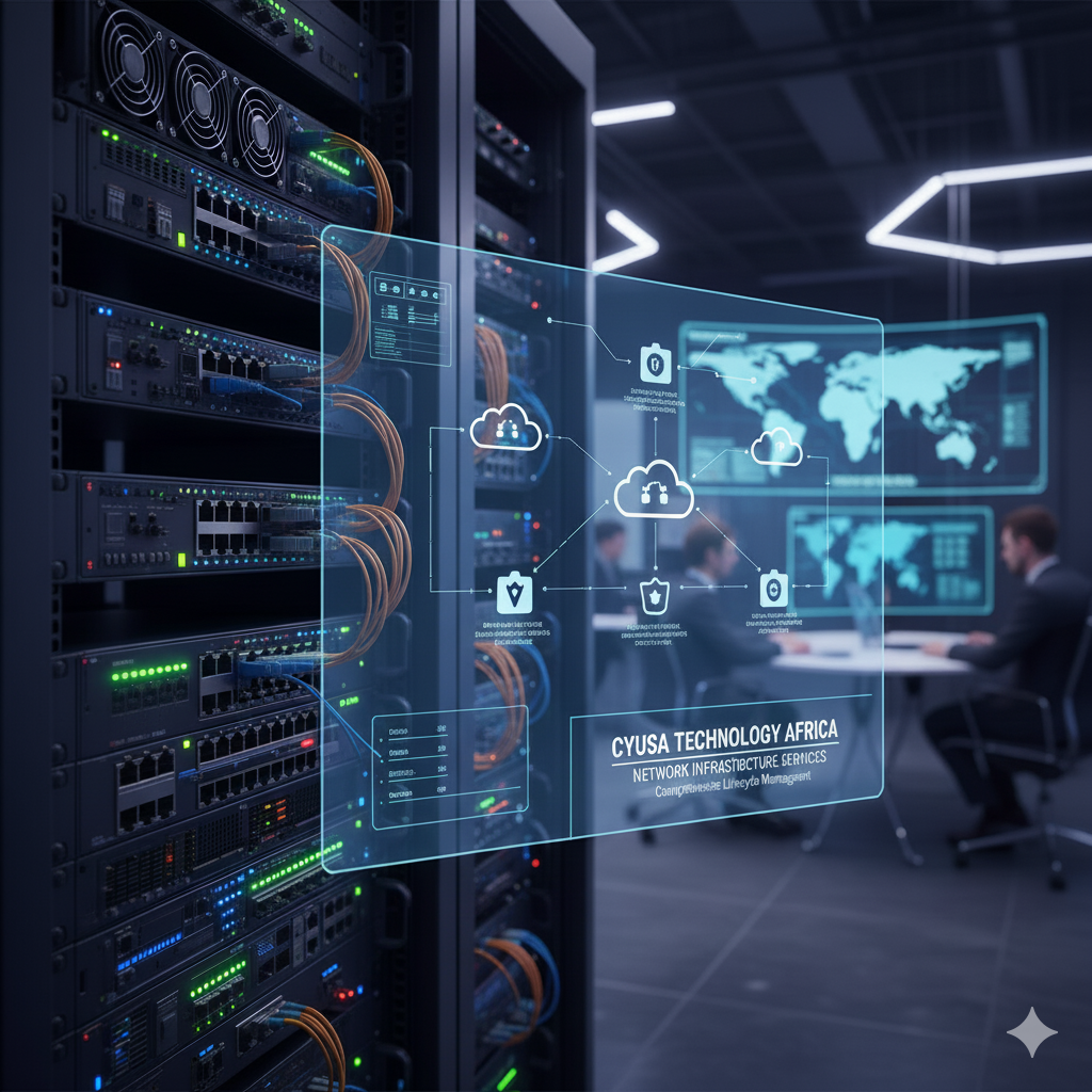 CYUSA TECHNOLOGY AFRICA offers comprehensive Network Infrastructure Construction Services, managing the entire lifecycle of your network from beginning to end, which includes the supply of essential network hardware and software, their professional installation and configuration, and continuous maintenance to ensure sustained performance, security, and reliability for your business operations.